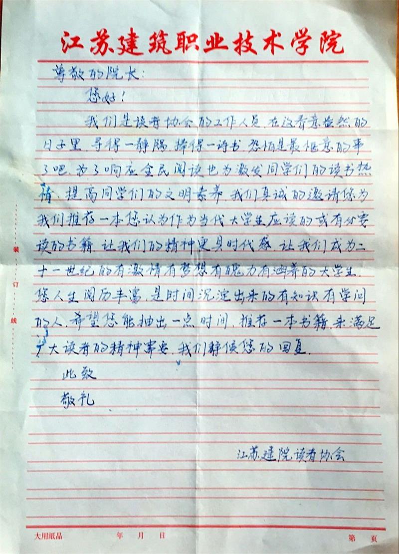 组织读者协会以学生的名义写信给HJC黄金城领导,内容如下: